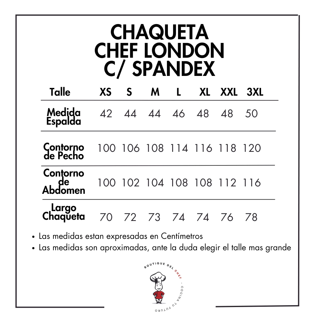 Válido para este producto y todos los de la categoría: PRODUCTOS -> CHAQUETAS CHEF.