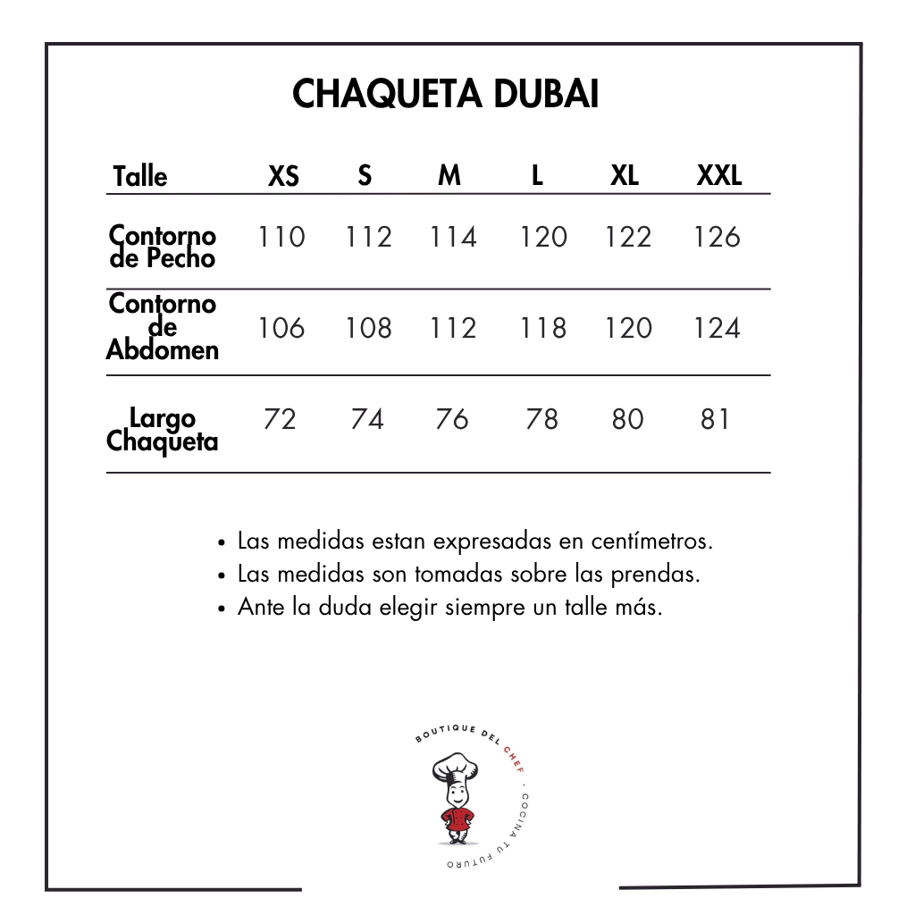 Válido para este producto y todos los de la categoría: PRODUCTOS -> CHAQUETAS CHEF.
